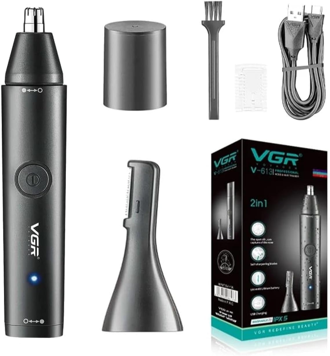 ماكينة حلاقة VGR V-613 الاحترافية 2 في 1 للأنف والأذن مقاومة للماء وشحن USB | VGR V-613 Professional 2-in-1 Nose & Ear Trimmer