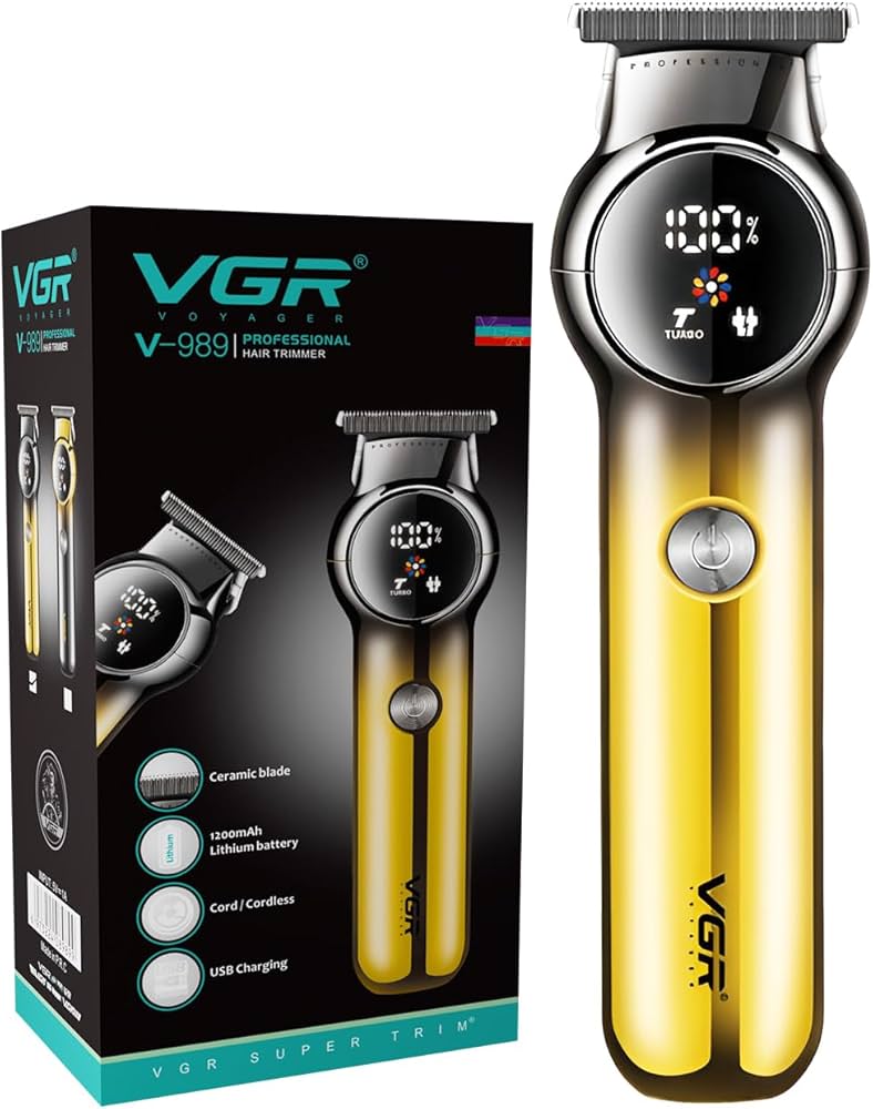 VGR V-989 Rechargeable Hair Trimmer with Ceramic Blade – Up to 180 Minutes Runtime and Smart LED Display