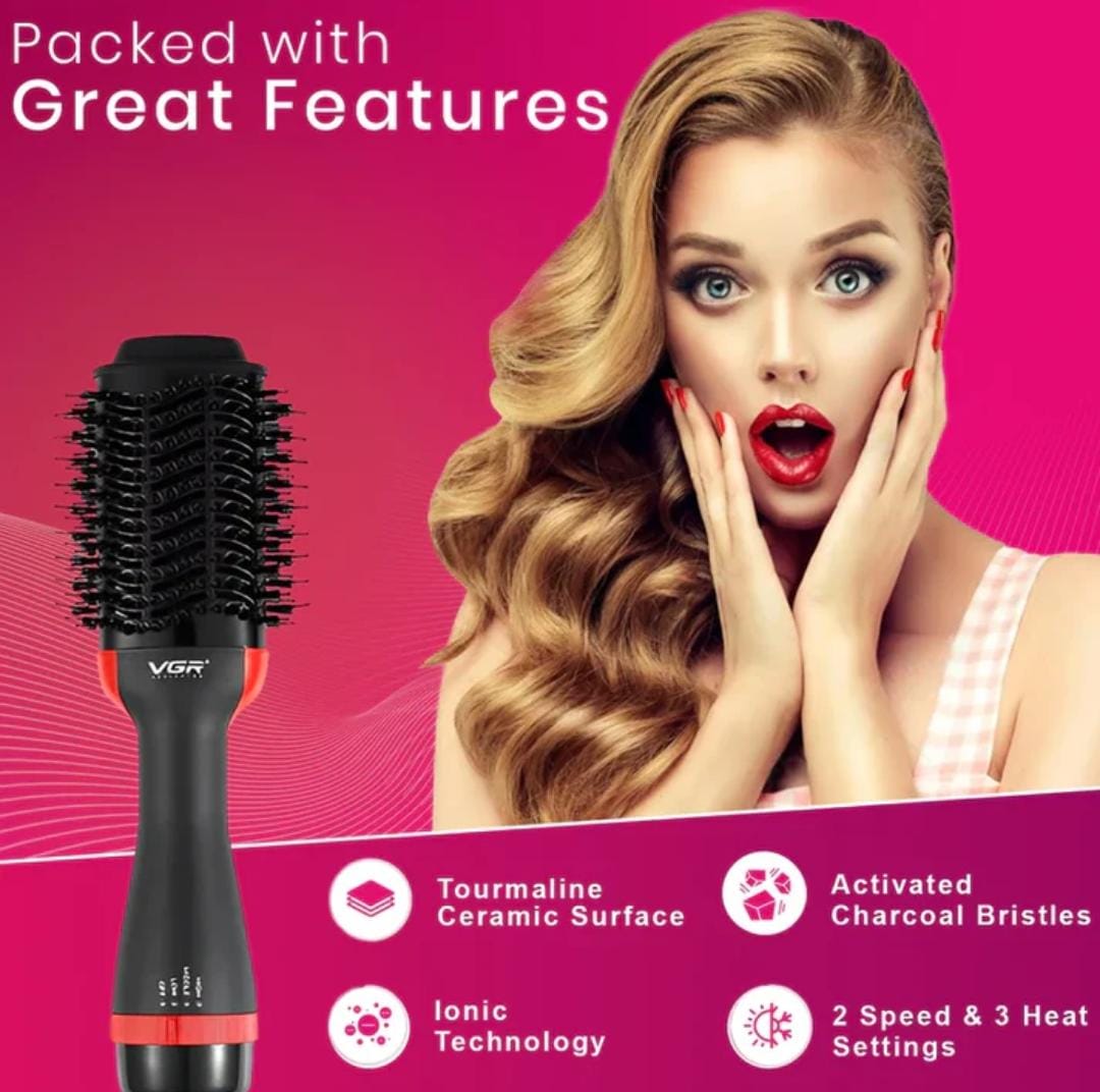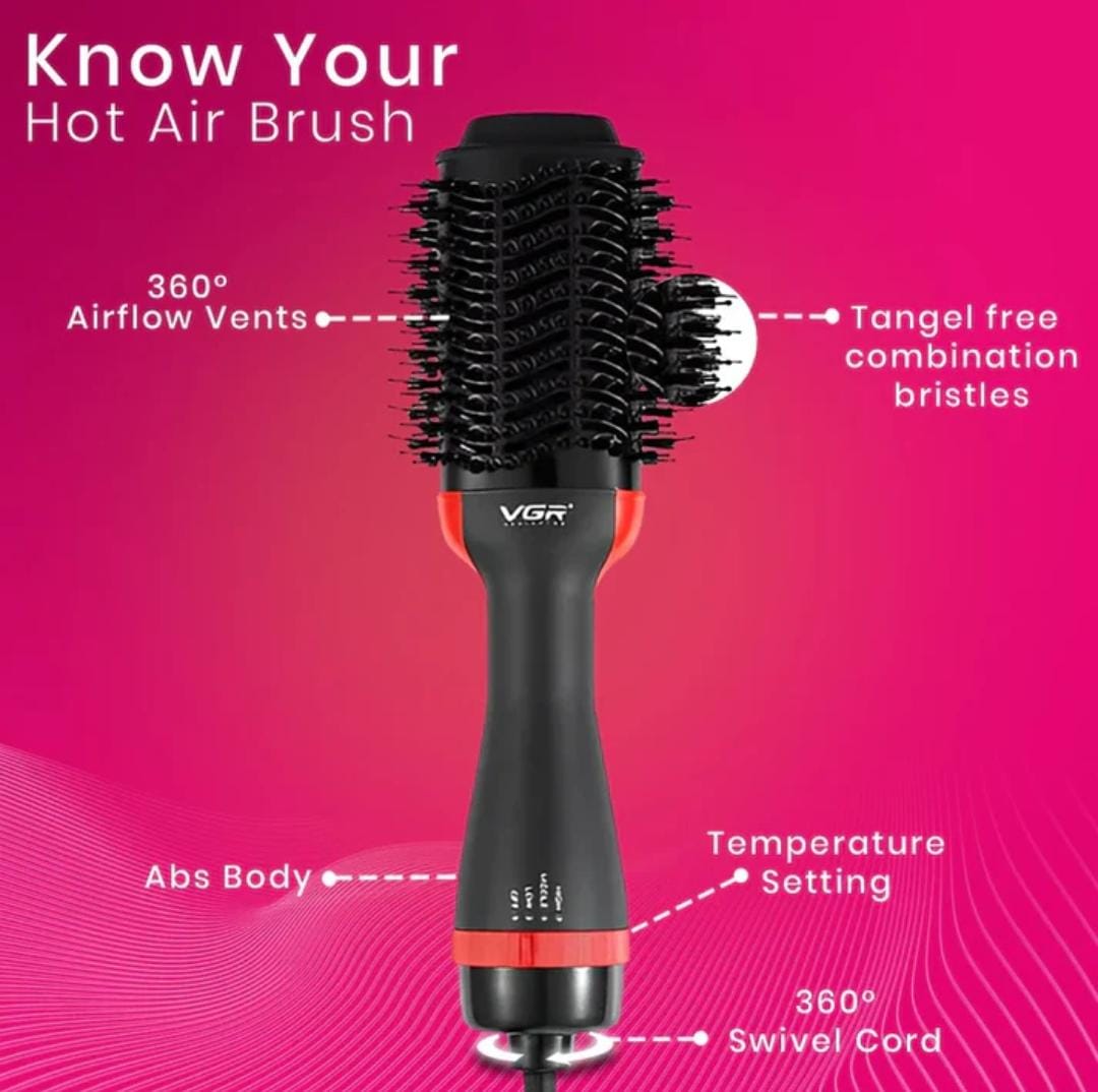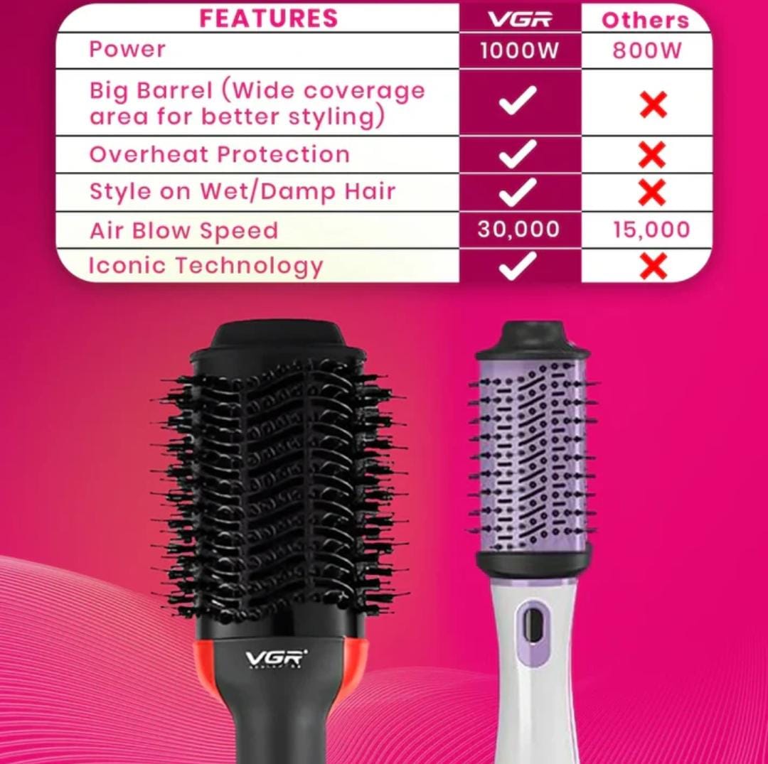 فرشاة تصفيف وتجفيف الشعر VGR V-416 الاحترافية (Hot Air Brush): قوة 1000 واط مع إعدادات حرارة متعددة لتجفيف وتنعيم الشعر بلمسة واحدة | VGR V-416 Professional Hot Air Brush for Drying and Curling