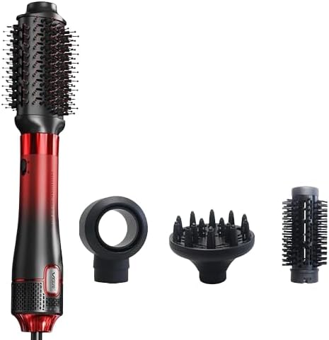 V-484 Professional Hot Air Brush | 1000-1100W Power | 4 in 1 | 4 Styling Heads, Diffuser, Concentrator, Round & Oval Brush | Fast Drying & Super Styling | Suitable for All Hair Types (Red, Black)