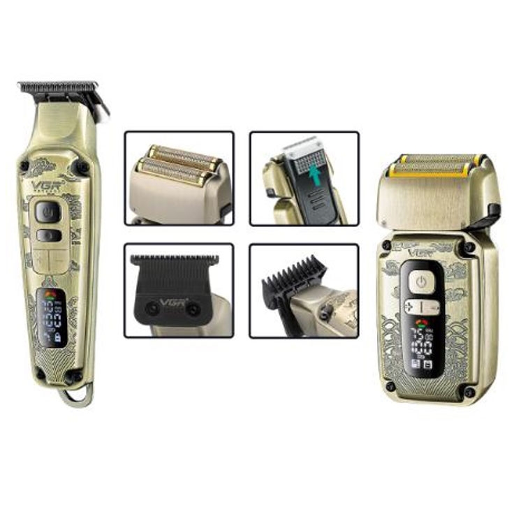 طقم VGR V-641 الاحترافي (ماكينة حلاقة + ماكينة تنعيم) هيكل معدني بالكامل | VGR V-641 Professional Hair Trimmer & Shaver Set