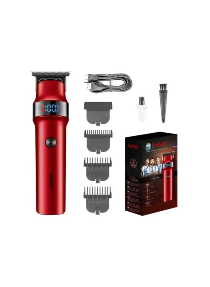 احصل على حلاقة دقيقة ومظهر احترافي مع ماكينة VGR باللون الأحمر الناري. تتميز بمحرك توربو قوي (7000 دورة في الدقيقة)، شاشة LED رقمية، وبطارية ليثيوم تدوم طويلاً. الخيار الأمثل لتحديد اللحية وقص الشعر بدقة متناهية.