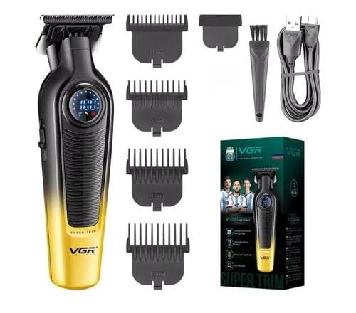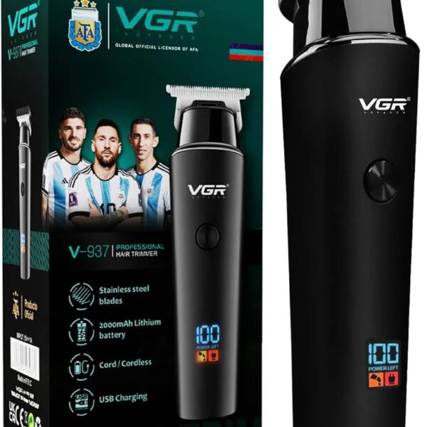 ماكينة حلاقة VGR V-030 الاحترافية: حلاقة دقيقة، محرك قوي، وتصميم عصري فضي للاستخدام الجاف.