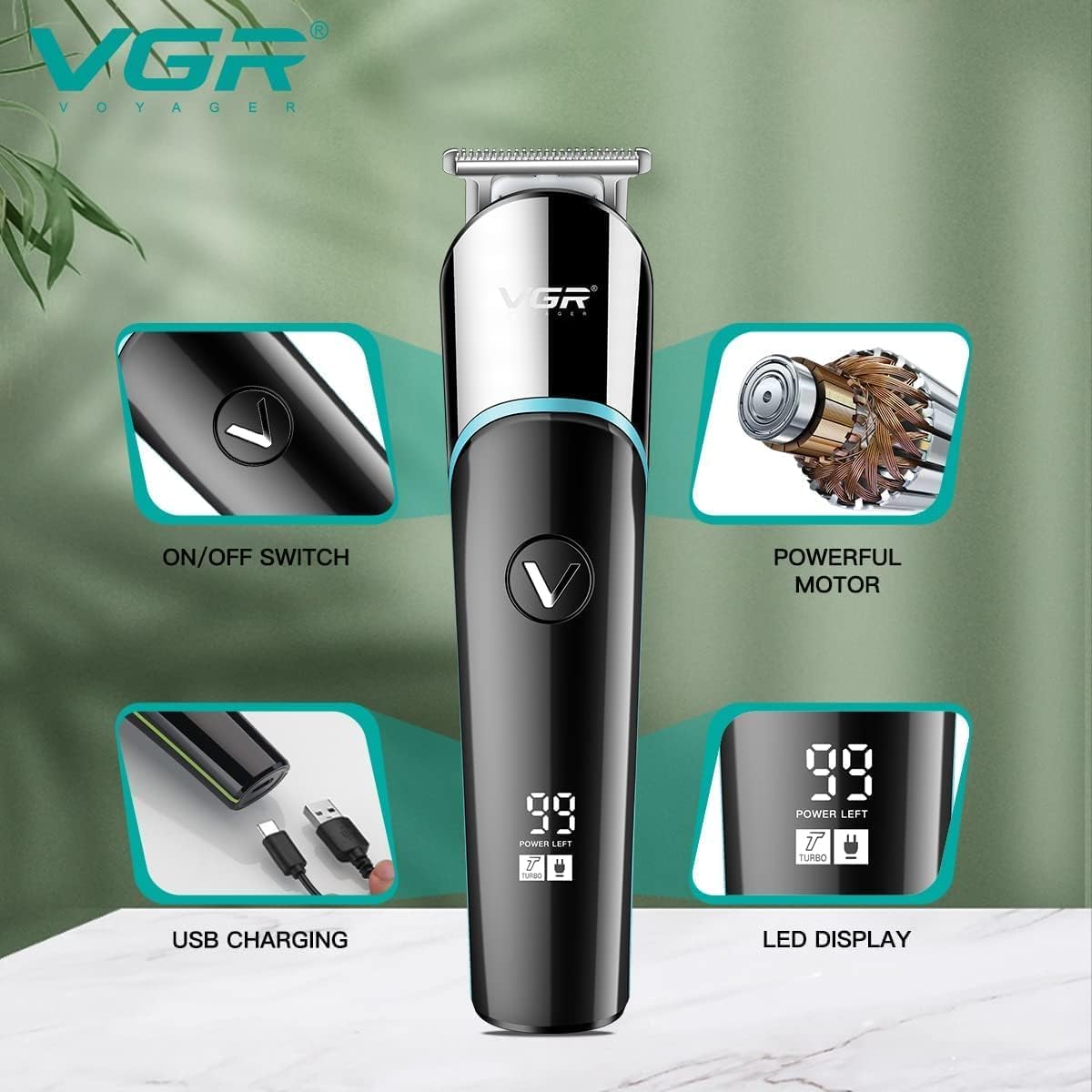 ماكينة حلاقة وتقليم الشعر الاحترافية من VGR – تعمل بالسلك أو بدون سلك، شفرة دقيقة على شكل حرف T، مؤشر LED لمستوى البطارية، شحن USB، 4 أمشاط ملحقة، 120 دقيقة من وقت التشغيل، V-291