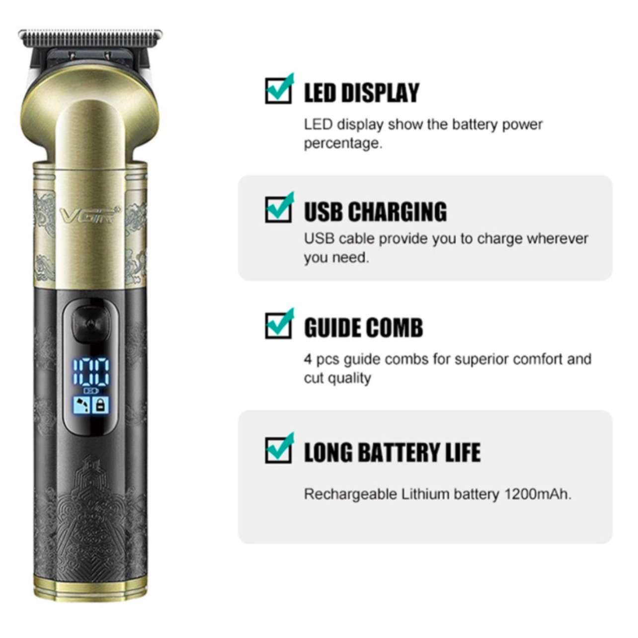 ارتقِ بتجربة الحلاقة الشخصية إلى مستوى الصالونات مع ماكينة VGR V-296. صُممت هذه الماكينة لتجمع بين القوة والدقة، مما يجعلها الخيار المثالي لتحديد اللحية، قص الشعر، ورسم التفاصيل الدقيقة بلمسة احترافية.