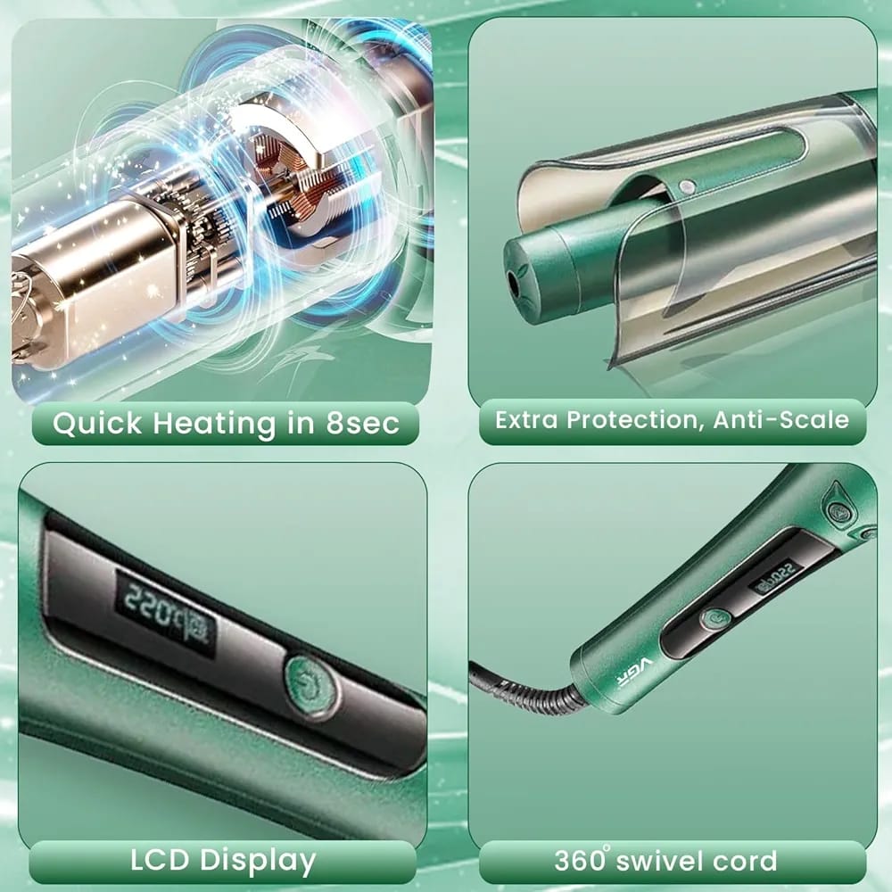 ماكينة تجعيد الشعر الأوتوماتيكية الاحترافية VGR V-583 بأسطوانة سيراميك وتحكم ذكي في الحرارة والاتجاه